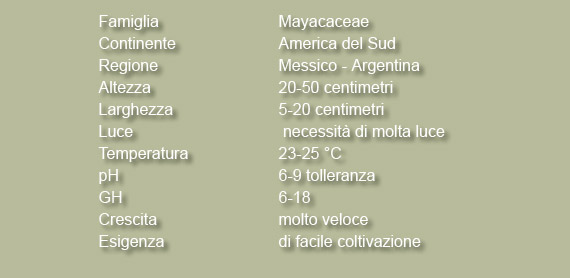La Mayaca fluviatilis è una piccola e graziosa pianta palustre molto resistente.