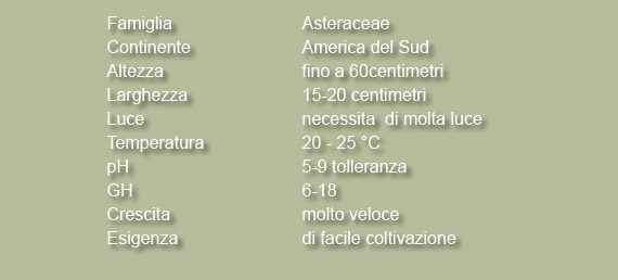 Si tratta di una pianta palustre con crescita estremamente rapida, che si adatta bene alle condizioni in acquario.