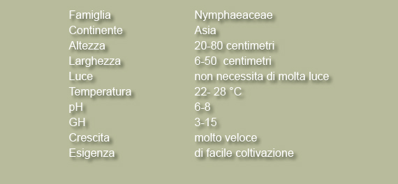 Se la fonte luminosa non è intensa produce foglie galleggianti più grandi (20 cm).