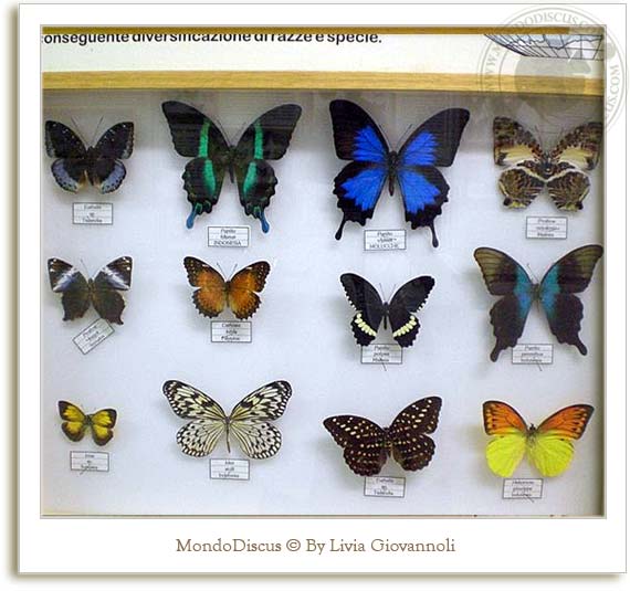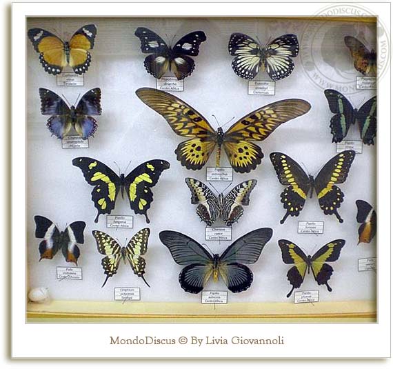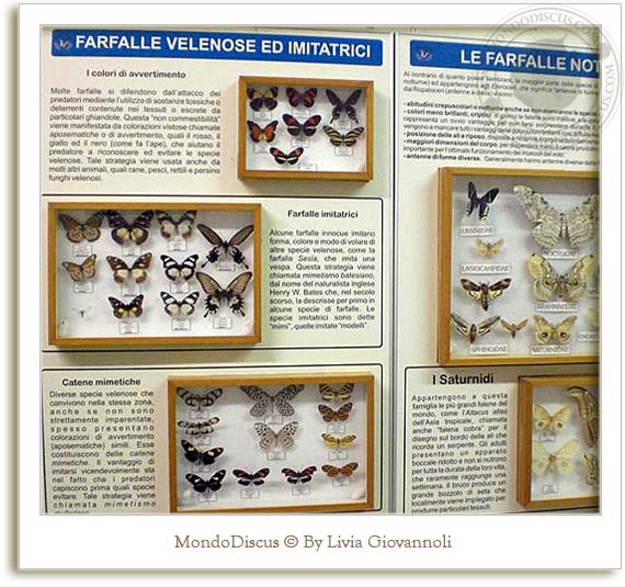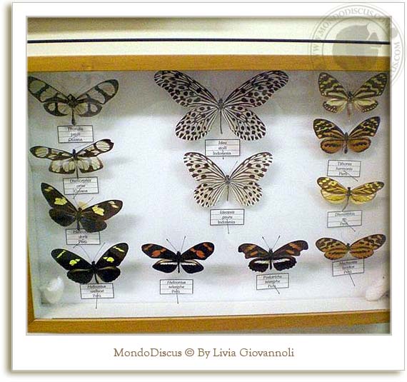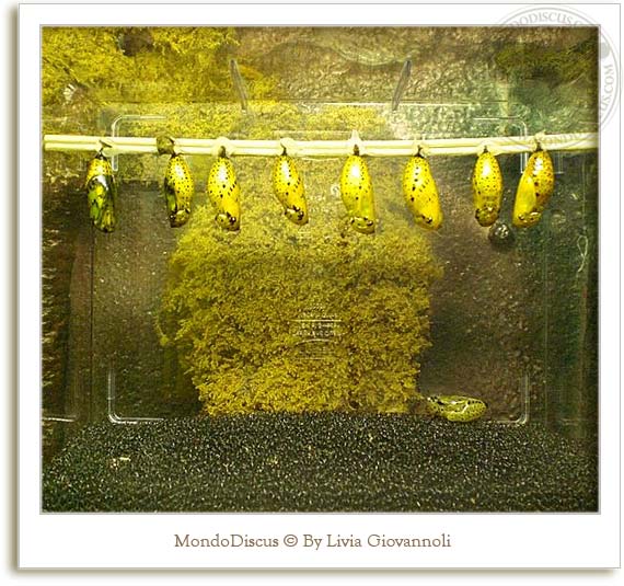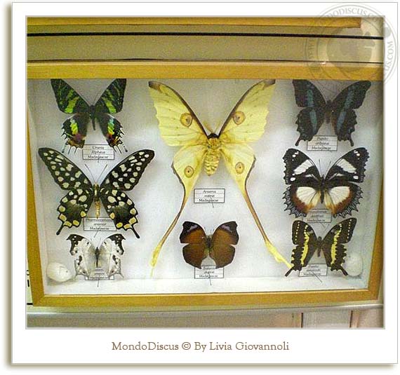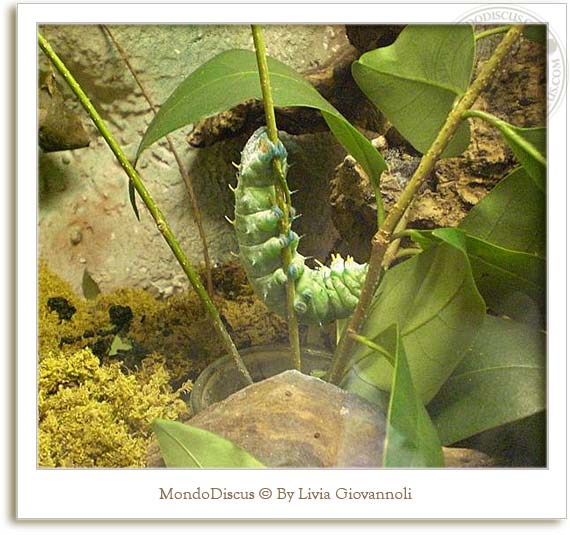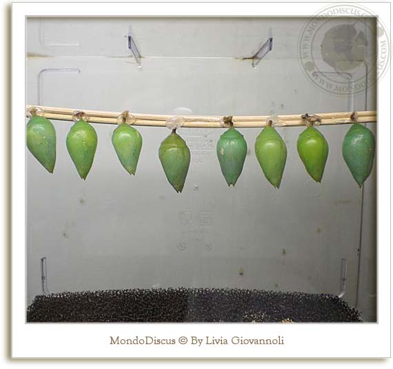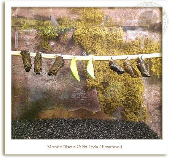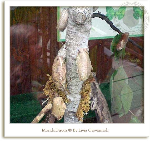 In alcune teche si potevano vedere i bruchi e i bozzoli delle farfalle in diverse fasi di metamorfosi: